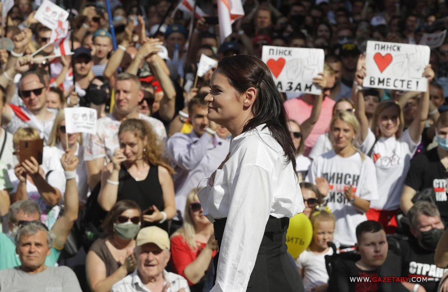 — Светлана Тихановская — бывший кандидат в президенты Беларуси, где она возглавляла демократическое движение. В августе 2020 года президент Александр Лукашенко заявил об убедительной победе на президентских выборах, что вызвало протесты по всей стране на фоне широких обвинений в фальсификациях голосов.